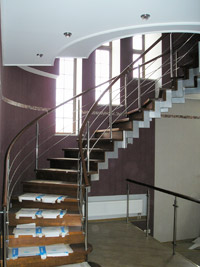 Современные строительные технологии, высококачественные строительные материалы в сочетании с дизайнерским искусством позволяют создавать лестницы любой конфигурации, размера и стиля. Разворот под определенным углом , форма косоура, стильные площадки между маршами, выточенные разными способами ступени — всё это может придать дому, квартире, офису особую оригинальность и своеобразие. Многое решает Ваш личный вкус. Но выбирая конструкцию лестницы и элементы ее декоративного оформления, стоит прислушаться к советам профессионалов. При использовании в создании лестницы металлических и стеклянных конструкций, современных полимерных и лакокрасочных материалов позволяют придать лестнице любую, даже самую радужную расцветку. В оформлении ступеней можно использовать всевозможные приемы: комбинировать различные цвета и узоры, применять мозаику, рельеф и т.д. Особенно украшает лестницу (и повышает удобство пользования ею) подсветка ступеней. Установка лестницы — завершающий штрих в оформлении интерьера, но, возможно, самый важный. От него во многом зависит не только красота, но и комфорт и безопасность.